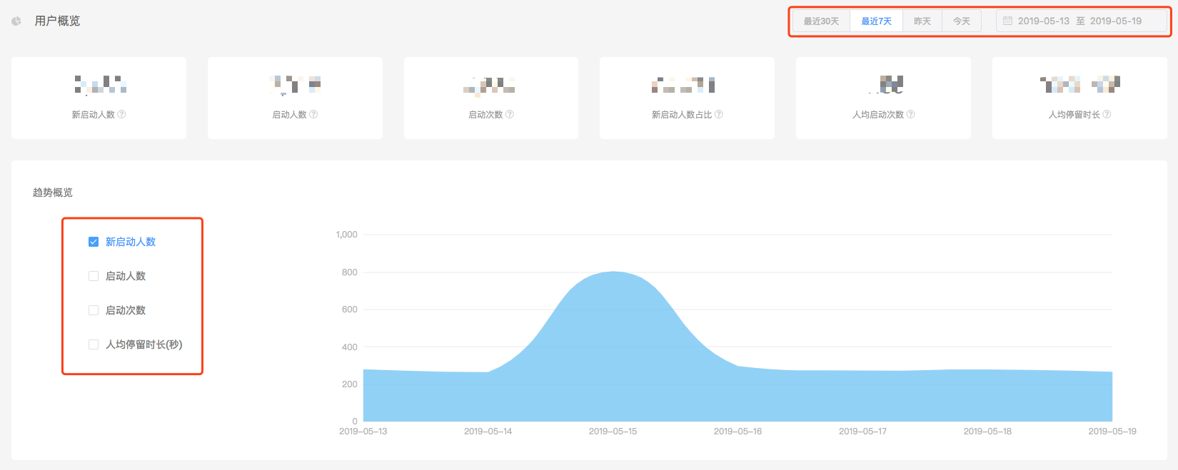可以帮助使用者快速了解小程序内近期用户表现情况。