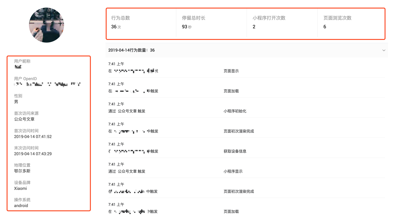 2.用户列表随筛选条件和时间段选取的不同组合而变化。同时支持查询某一用户的操作轨迹。
